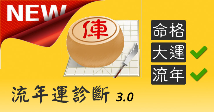 新版「流年運診斷」更「實用」了!這次改版,重新把章節劃分做了整理,看起來更清楚。而且更直接增加了兩個全新的章節:《小人影響》與《運動健身》,同時也提供《考運》的月份提醒。 小人影響這個章節,十週年慶活動時曾經提供會員免費試算,現在把內容優化之後置入《流年運診斷》中,並提供需要注意的月份!而《運動健身》是一個挺有意思的章節,因為很多人都說健身運動是件苦差事,因為他們總是「有心無力」!這個新章節就是把哪時候健身效益最高、毅力最強幫大家找出來,非常實用哦!最後,在《考運》的部份,我額外提供月份注意事項,這對明明考運不好卻又需要考試的人來說,挺有用處!可以知道這個月考試應該特別做哪些調適、調整。 一樣,這次的改版依然是免費升級的,且近期《流月》分析也會改寫,希望這個服務能給大家更多幫助。 |