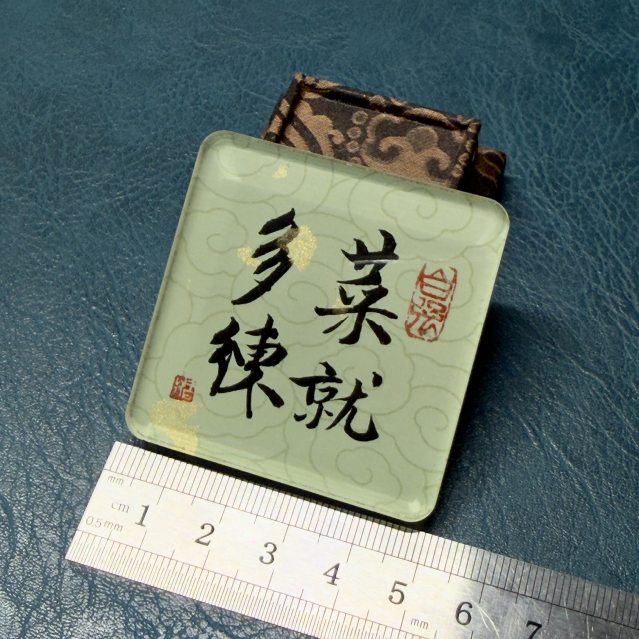 使用高透壓克力製作,每一個都是老師用毛筆寫的字,非印刷品。